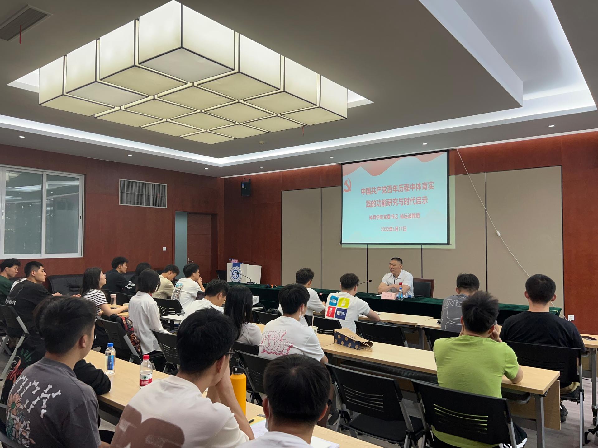 6月17日,乐玩体育平台APP党组织书记杨远波在体育馆会议室为全体在校研究生开展了题为《中国共产党百年历程中体育实践的功能研究与时代启示》的专题思政理论课。